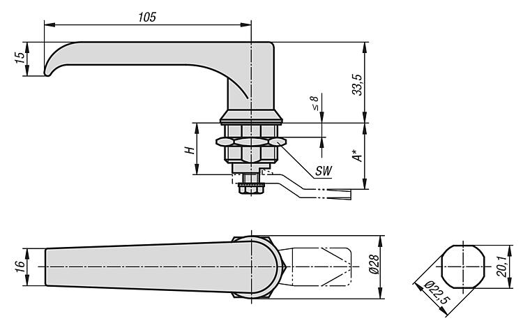 Datasheet 05594 带 L 型把手的不锈钢 1.4301 旋转锁销,外壳直径 28 mm 184 kB