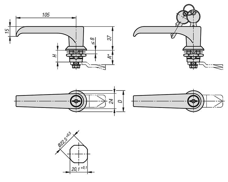 05594-02带 L 型把手的不锈钢 1.4401 旋转锁销,可锁定式,外壳直径 32 mm |