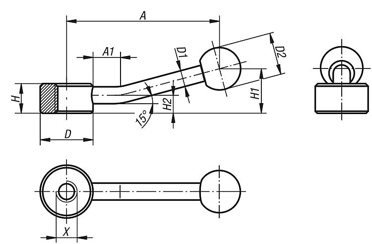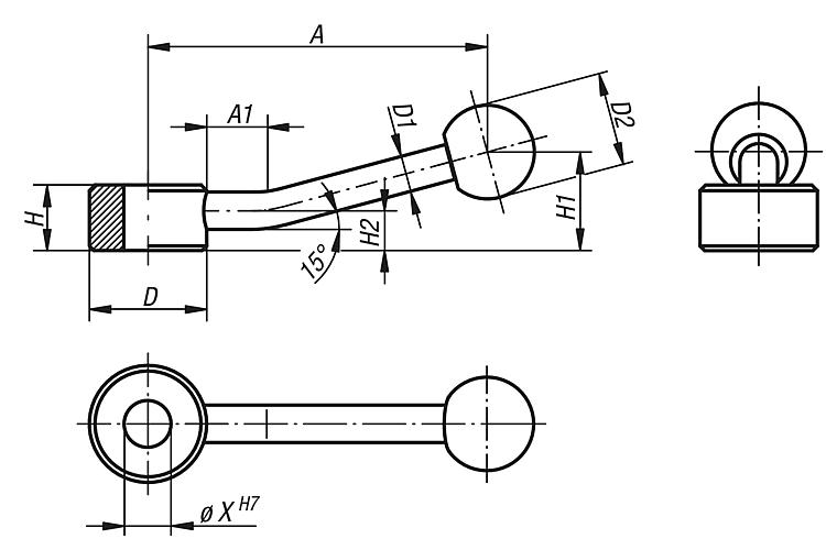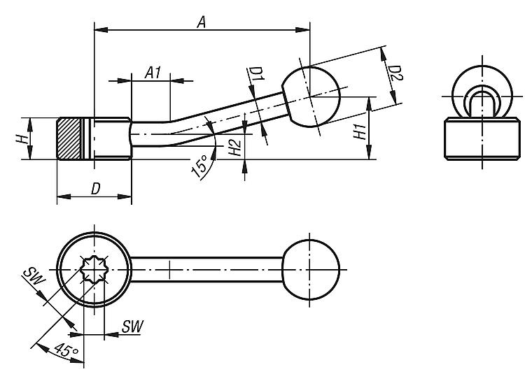规格:黑色氧化处理。提示:锁紧手柄可用于简单的夹紧任务和开关操作。