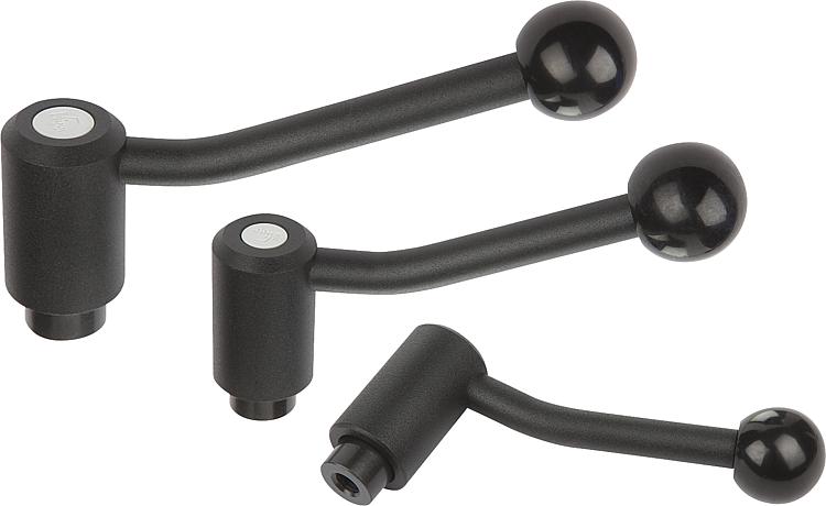 规格:精细塑料涂层,黑色。使用说明:操作安全锁紧手柄时,必须尽量下压,直至轮齿完全啮合。然后可以操作其进行锁紧或松开。操作完成后,内部弹簧会将手柄顶开,因而确保其安全 (把手脱离)。根据要求:特殊类型。