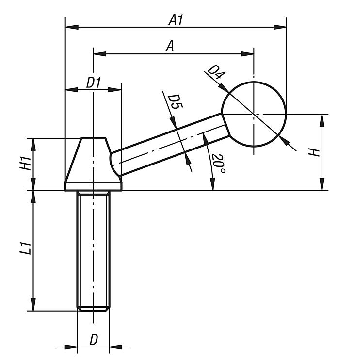 钢制锁紧手柄,带外螺纹和塑料球形头