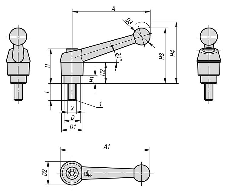 Datasheet 06431 带外螺纹的压铸锌锁紧手柄,黑色和银色,不锈钢螺纹嵌入件 280 kB