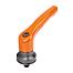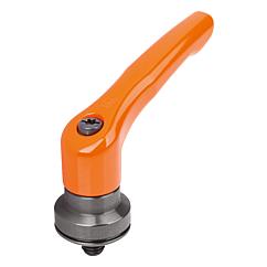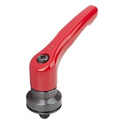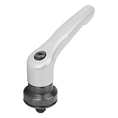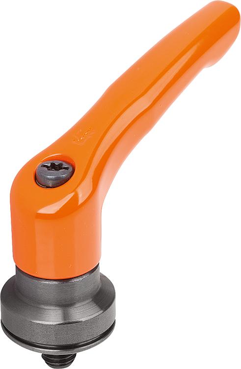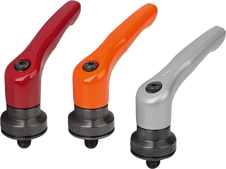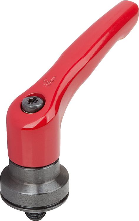 使用说明:手柄杆在未受控制的状态下通过一个齿圈卡入螺纹嵌入件中。抬起把手可将其换入位置并通过弹簧弹力重新卡入齿圈。应用:机械、仪器和设备制造,康复区。装配:拧入深度必须至少为螺纹直径的 2 倍,安装时应轻微润滑螺纹。优点:在使用同样的紧固力矩的情况下,显著增加了夹持力。