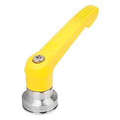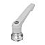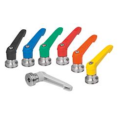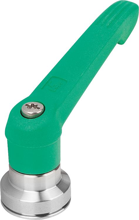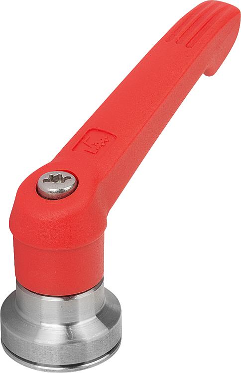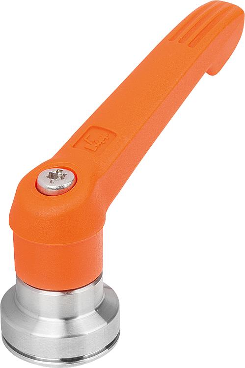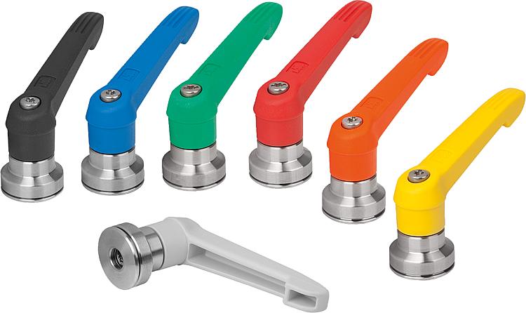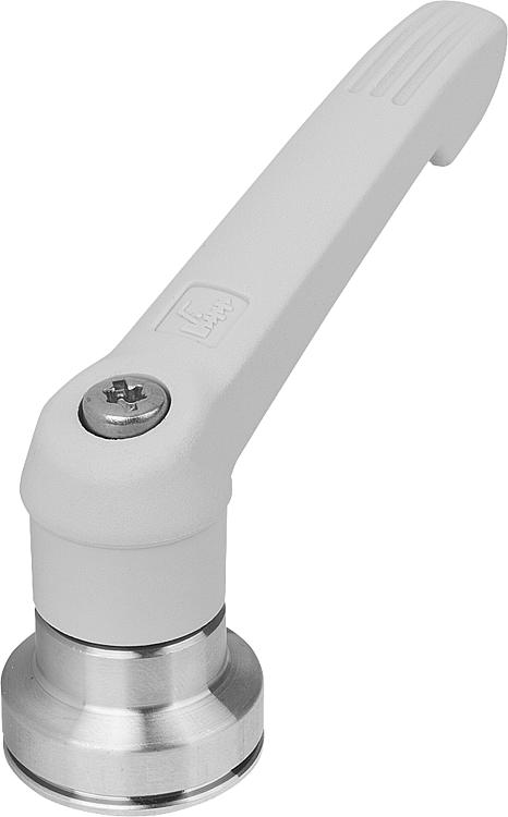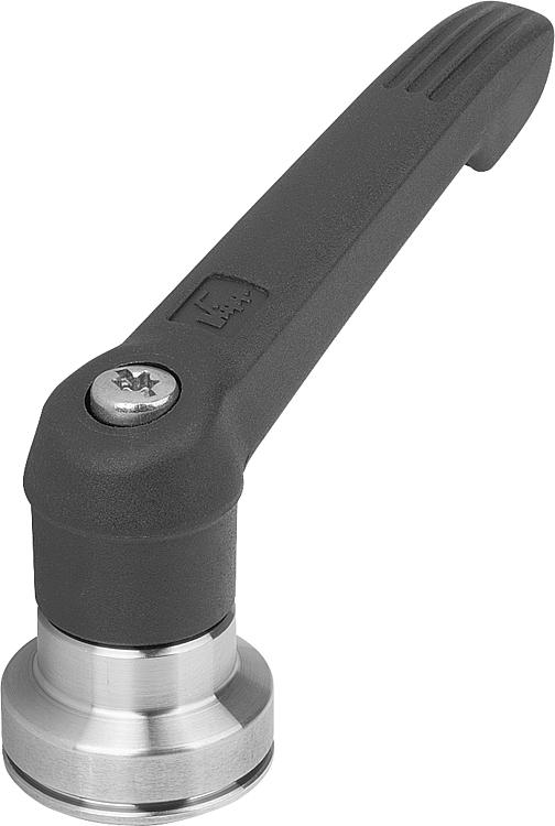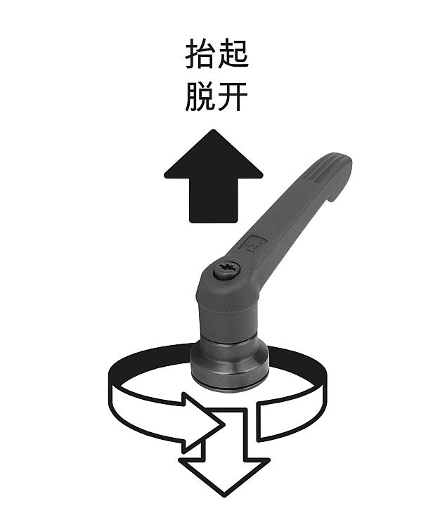 使用说明:把手在未受控制的状态下通过一个齿圈卡入齿形芯中,以这种方式来紧固或松解螺纹。抬起把手可将其换入位置并通过弹簧弹力重新卡入齿圈。应用:机械、仪器和设备制造,康复区。装配:拧入深度必须至少为螺纹直径的 2 倍,安装时应轻微润滑螺纹。优点:在使用同样的紧固力矩的情况下,显著增加了夹持力。