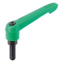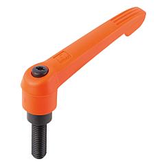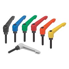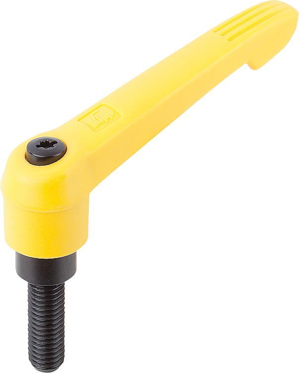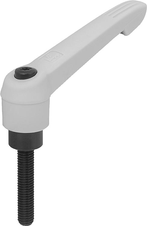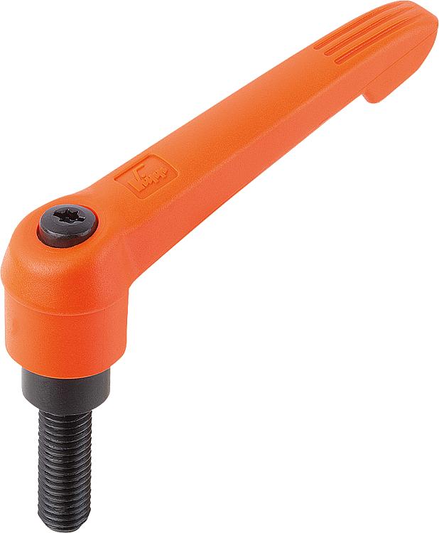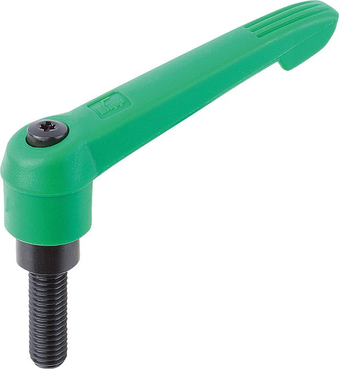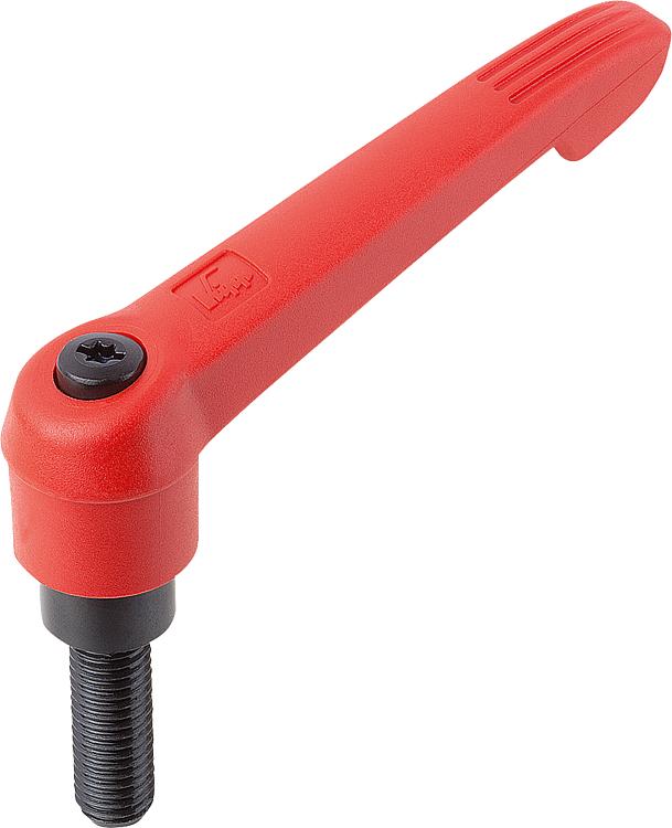 带外螺纹和锌制齿环的塑料锁紧手柄,钢制螺纹嵌入件经氧化处理