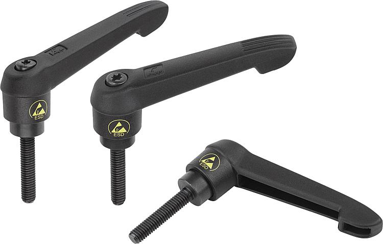 带外螺纹的抗静电塑料锁紧手柄,钢制螺纹嵌入件经氧化处理