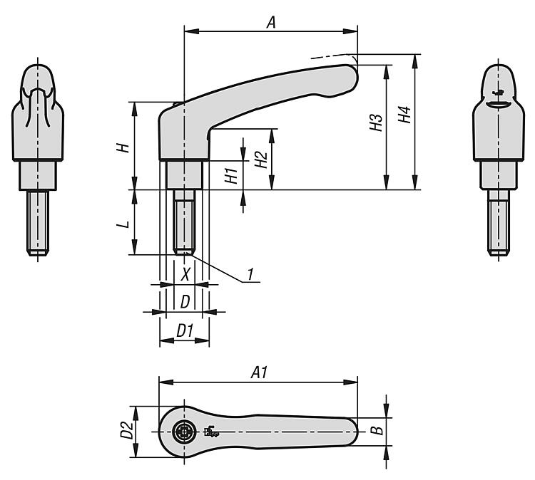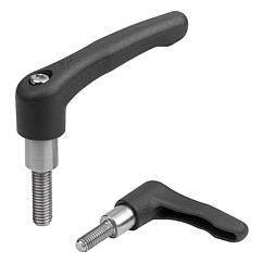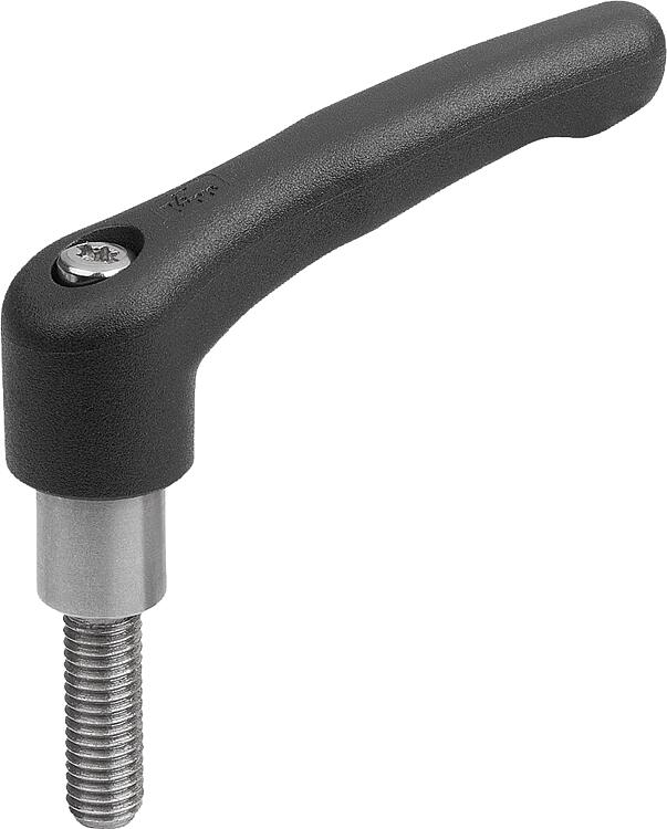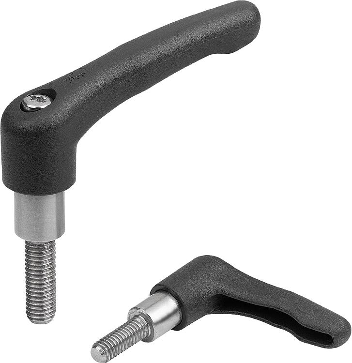 塑料锁紧手柄,带外螺纹和加长轴环,不锈钢螺纹嵌入件
