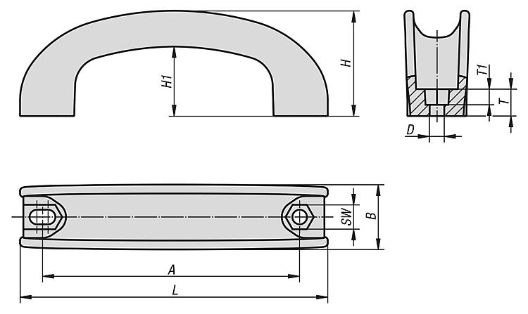 Datasheet 06907 塑料 U 型弓形把手,带椭圆孔