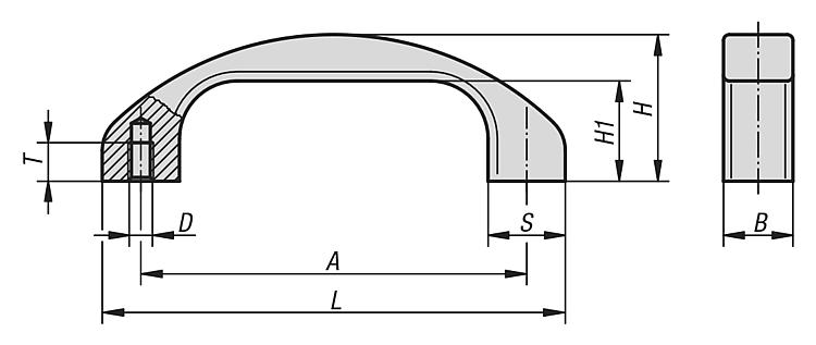 半光泽阳极氧化铝制弓形把手,从背面安装