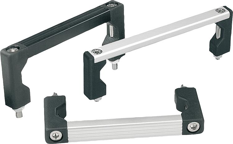 铝制弓形把手,带塑料手柄和棱形手柄杆,从操作侧安装