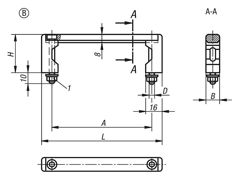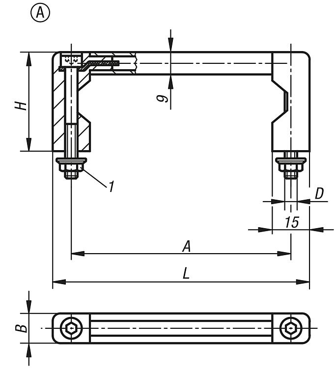Datasheet 06932 铝制弓形把手,带塑料手柄,从操作侧安装