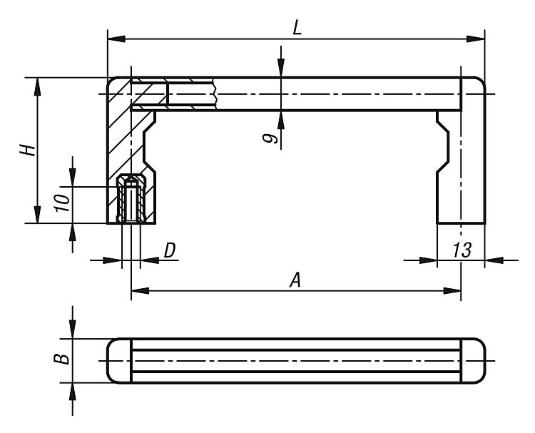 Datasheet 06933 铝制弓形把手,带塑料手柄和棱形手柄杆,从背面安装