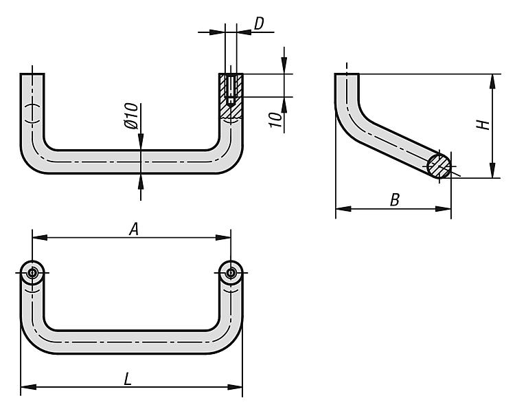 阳极氧化铝制弓形把手,圆形倾斜式,圆形型材直径 10,从背面安装