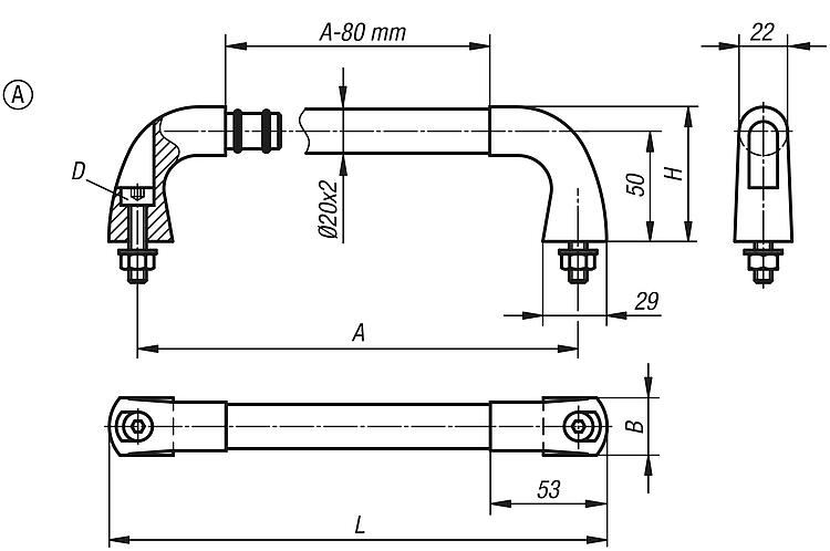 Datasheet 06943 带熔模铸造塑料手柄的不锈钢管状把手