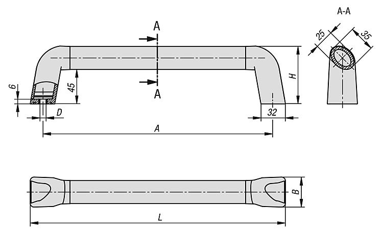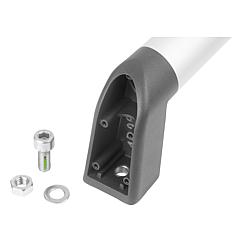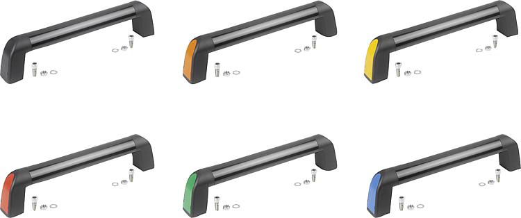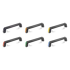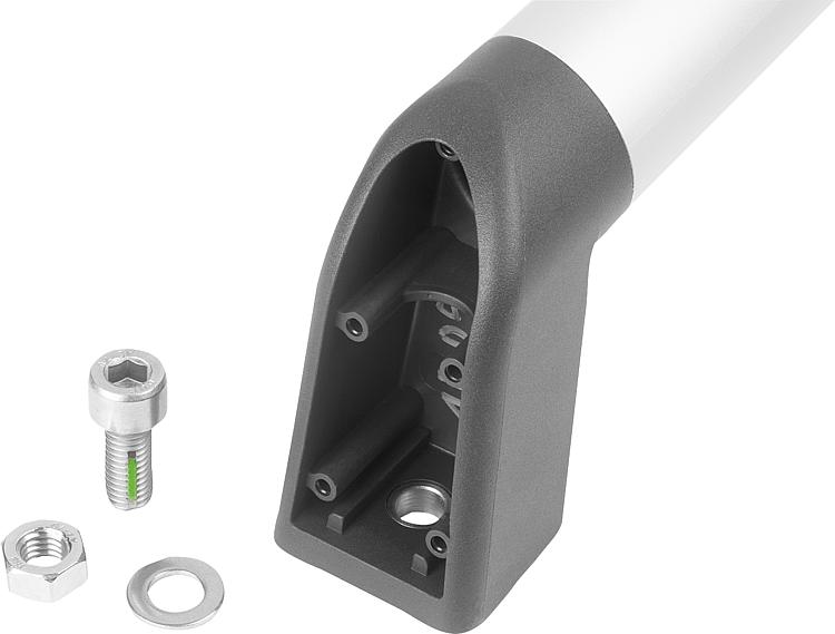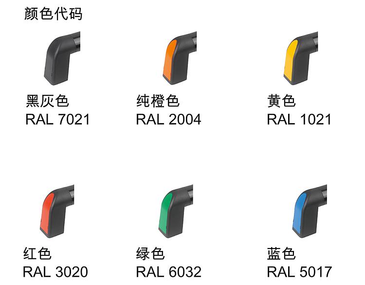 产品说明产品描述:重新采用新式设计的大尺寸管型把手具有符合人体工学的椭圆形手柄和精心设定的管型尺寸,抓握牢靠舒适。永恒优雅的设计风格令人爱不释手,可选的颜色规格能与环境完美搭配。材料:铝制椭圆管 端件采用热塑性塑料,尼龙 盖板采用热塑性塑料,尼龙 固定衬套采用不锈钢。规格:黑灰色椭圆管经喷粉处理(光亮),黑色阳极氧化处理(亚光)和自然阳极氧化处理(哑光)。 端件采用黑灰色 RAL 7021。 盖板采用黑灰色 RAL 7021、纯橙色 RAL 2004、油菜黄 RAL 1021、交通红 RAL 3020、信号绿 RAL 6032 和交通蓝 RAL 5017。订购须知:Δ 此位填写所需的颜色代码。提示:紧固材料不包括在供货范围内。 为确保牢固和永久固定,建议使用带内六角螺钉和螺纹锁紧装置的圆柱螺栓。 温度范围:持续工作温度最高为 100 ℃。 短时工作温度最高为 180 ℃。装配:设计的端头件结构,可确保管型把手固定在操作侧或背侧。此处搭配了 DIN 内六角圆柱头螺丝或螺纹尺寸为 M8 的六角螺栓。安装后可手动压入盖板。盖板的两面均带槽,有助于使用螺丝刀顺利拆卸。 根据要求:轴心间距“A”,提供各种级别的特殊长度。附件:07160 带内六角螺钉的圆柱螺栓,DIN 912 / DIN EN ISO 4762 带螺纹锁 07160 带内六角螺钉的圆柱螺栓, DIN 912 / DIN EN ISO 4762 07171 六角螺栓 DIN 933 / DIN-EN-ISO 4017 07210 六角螺母 DIN 934 / DIN EN ISO 4032 / DIN EN 24032 07300 切片 DIN 125 / DIN EN ISO 7089 Form A特点: 下载此处为收集信息的 PDF: