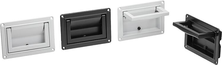 产品说明材料:铝制压铸件。规格:侧板和把手经黑色或浅灰色喷漆,半亚光。提示:嵌入式把手可通过其现代化的设计用于任何需要固定和外形美观手柄的位置。 A 型嵌入式手柄把手可保持在原位或拉出位置。 B 型嵌入式手柄把手使用后会自动缩回原位。装配:使用相同的外壳切口,这种手柄可以折叠在安装板前面或后面安装。图纸提示:特点: 下载此处为收集信息的 PDF: