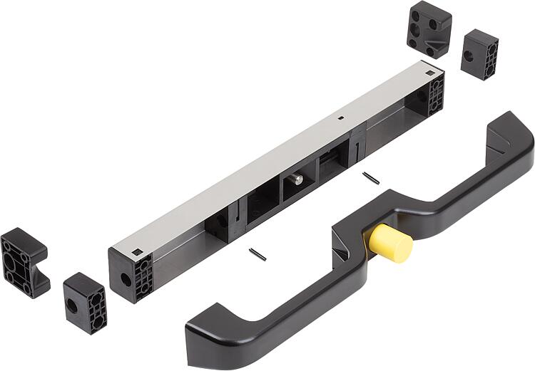 订购须知:用于锁定装置的杆成对出售。提示:带锁定单元的把手可用于宽度为 1.5 m 的抽屉。轨道厚度必须至少为 17.5 mm。该系统可以安装在两个位置。 前部安装用于固定抽屉,后部安装用于固定并锁定抽屉。