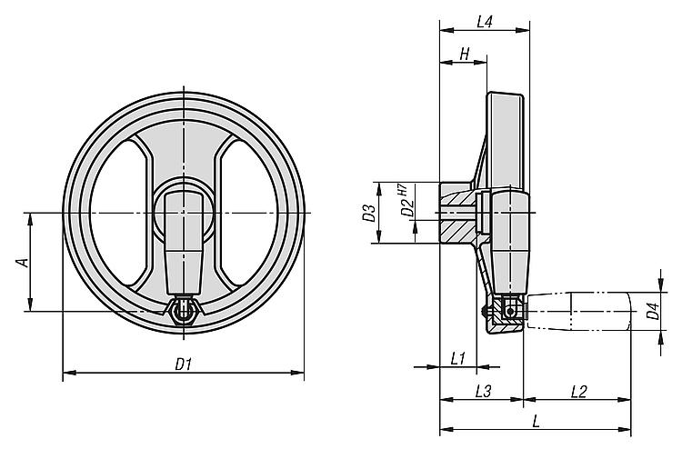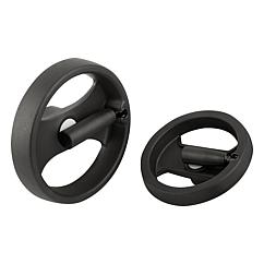 产品说明材料:手轮,增强型和稳定性聚酰胺。 聚酰胺材质的中心堵头。 手柄的直通型衬套和 螺纹嵌入件,钢制。规格:手轮,耐润滑油和润滑脂,黑色 (RAL 9011),锻光。 灰色中心堵头 (RAL 7035)。 可折叠手柄的直通型衬套和 螺纹嵌入件,经黑色氧化处理。根据要求:其他顶盖颜色, 特殊类型。特点: 下载此处为收集信息的 PDF: