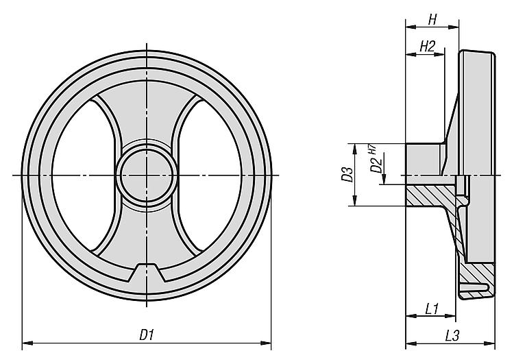 产品说明材料:手轮,增强型和稳定性聚酰胺。 聚酰胺材质的中心堵头。 钢制直通型衬套。规格:手轮,耐润滑油和润滑脂,黑色 (RAL 9011),锻光。 灰色中心堵头 (RAL 7035)。 直通型衬套,经黑色氧化处理。根据要求:其他顶盖颜色, 特殊类型。特点: 下载此处为收集信息的 PDF: