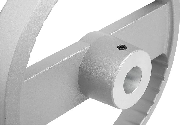 产品说明材料:铝制手轮。 热塑性轮毂盖,黑色。 埋头螺栓 ISO 4027,钢制,强度等级 45 H,黑色。规格:黑色或银色的粉末涂层。提示:轮辋的径跳和端跳 ≤ 0.4 mm。装配:轮毂盖并未安装。 手轮可通过十字销钉或者通过一个圆柱头螺栓 DIN 6912 和一个垫圈 07375 轴向通过键槽连接固定在轴上面。 如果是带横孔的规格,则要通过旋入的埋头螺栓 ISO 4027 进行固定。附件:07375 沉孔垫圈。 07161 短头内六角螺栓 DIN 6912。供货范围铝制手轮。 轮毂盖。 埋头螺栓 ISO 4027(带横孔的规格)。图纸提示:特点: 下载此处为收集信息的 PDF: