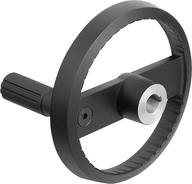 06276-11_C双辐式铝制手轮,带有可旋转的圆柱形手柄,C 型,带装配孔和键槽 |