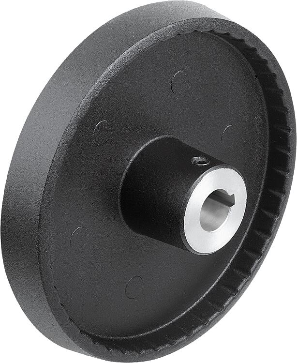 铝制圆盘手轮,无手柄,B 型,带装配孔、键槽和十字孔