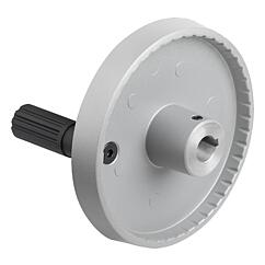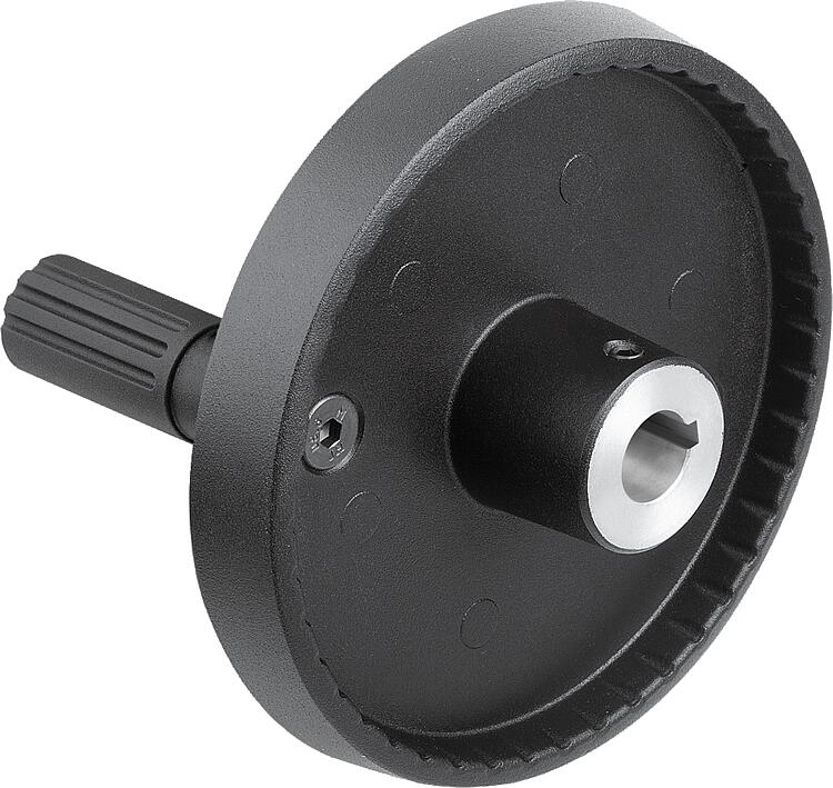 06278-01_B铝制圆盘手轮,带有可旋转的圆柱形手柄,B 型,带装配孔、键槽和十字孔 |