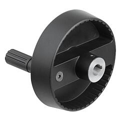 06278-02_B铝制圆盘手轮,带有可折叠的圆柱形手柄,B 型,带装配孔、键槽和十字孔 |