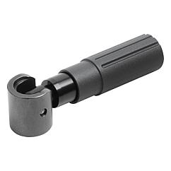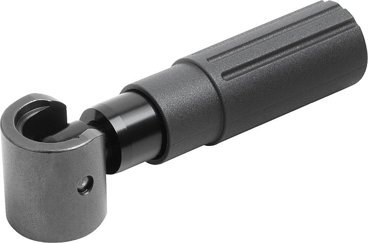 产品说明产品描述:手柄交付时已组装,并且可以安装在例如:手轮、卷筒和曲柄上。 圆柱形的轴肩和圆锥形的形状让曲柄具有优化的手感和良好的抓握性。 松开后可自动摆回的设计规避了干扰轮廓,在最大程度上降低了受伤风险。材料:热塑性塑料把手。钢制轴。规格:手柄,黑色。 钢制部件经黑色氧化。提示:为了使安全型手柄处于操作位置,要执行两个调整操作: - 将把手和旋转轴旋转至挡块位置 (90°)。 - 沿轴向方向将把手压入锁定位置。 松开后可自动摆回。