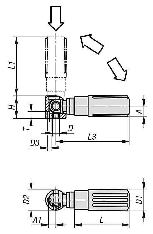 钻孔 D3 用作定位孔。优点:优化了手感,易于抓握 手轮和摇柄把手 松开后可自动摆回 各种螺纹尺寸特点: 下载此处为收集信息的 PDF: