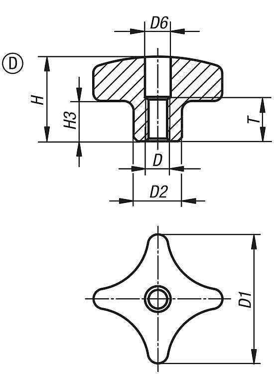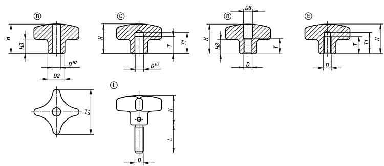 十字把手,类似 DIN 6335,不锈钢,D 型,已扩孔螺纹