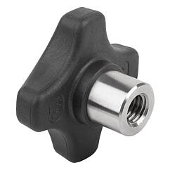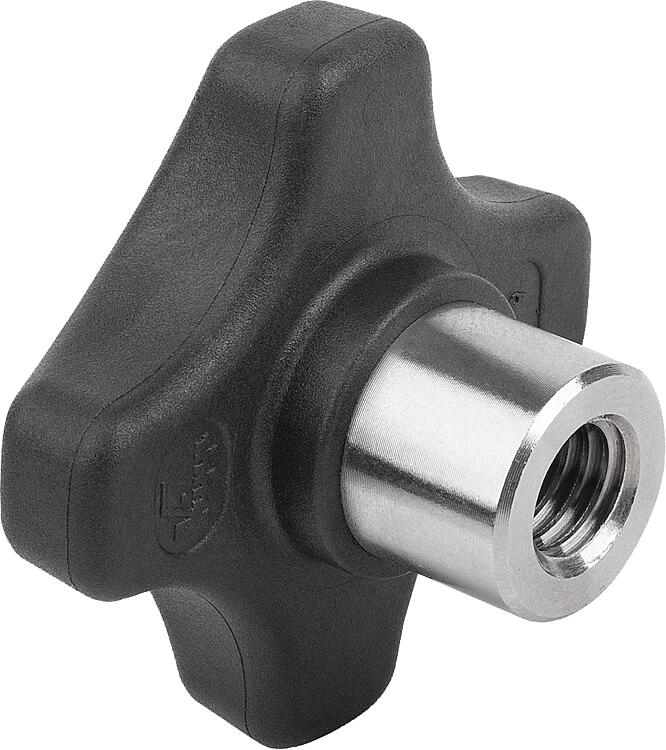 不锈钢光亮钢件。提示:带有突出钢衬套的十字手柄特别适用于带有内螺纹设计的交叉销连接。应用:- 食品工业