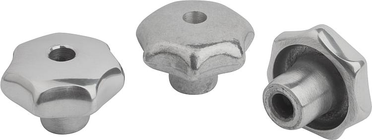 星形旋钮,类似 DIN 6336,铝制,D 型,已扩孔螺纹