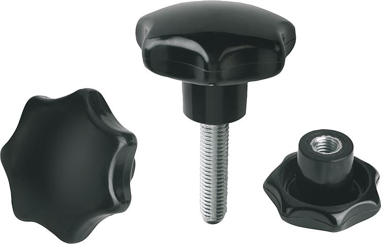 星形旋钮,类似 DIN 6336,K 型,带螺纹轴套