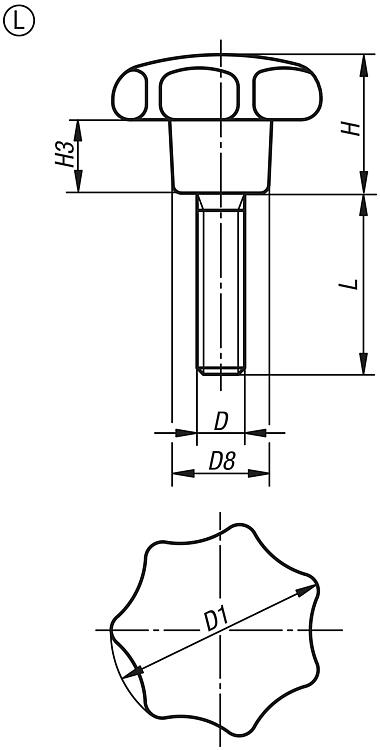 星型旋钮 类似 DIN 6336,外螺纹,L 型