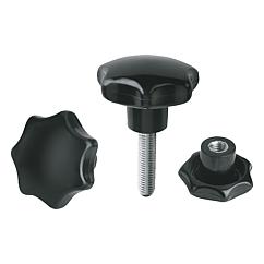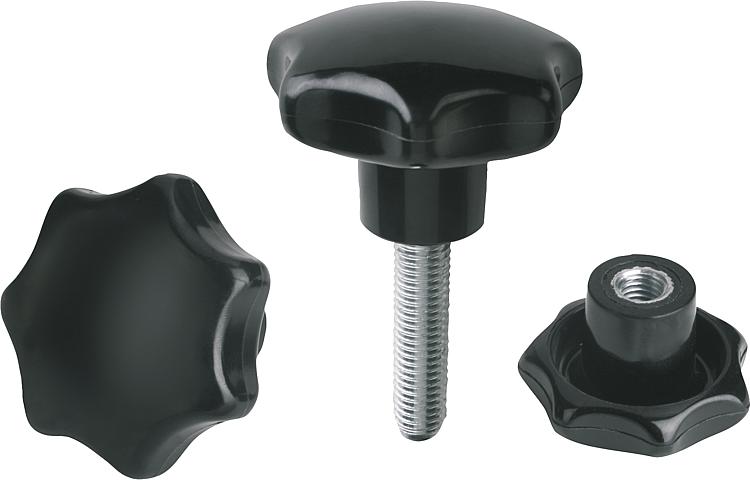 星形旋钮,类似 DIN 6336,金属件不锈钢,K 型,带螺纹轴套