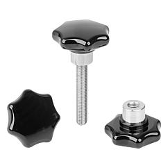 塑料星形旋钮,带凸出型钢制衬套,K 型,螺纹轴套