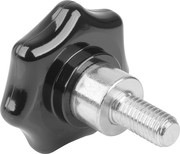 06209-01_L塑料星形旋钮,带凸出型钢制衬套,L 型,外螺纹 |