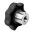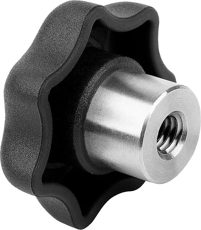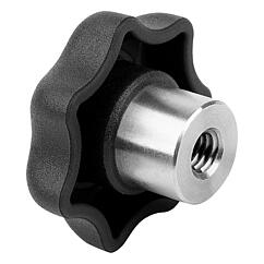 可探测金属的塑料星形手柄,带突出钢衬套,K 型,带螺纹衬套