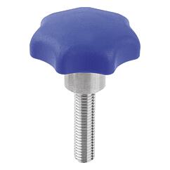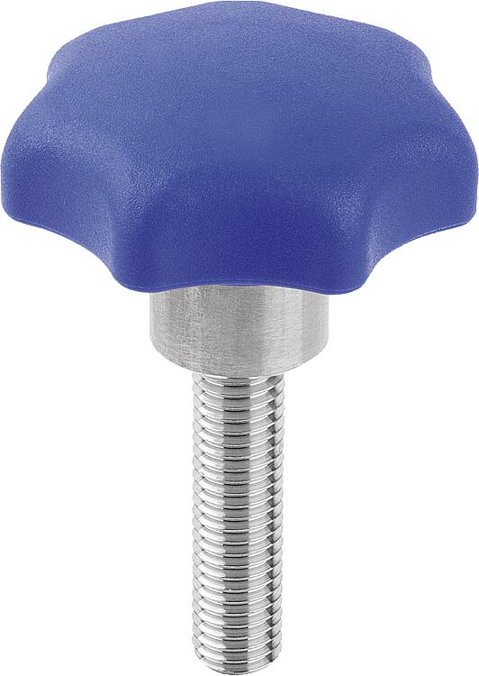可目视探测的塑料星形手柄,带突出钢衬套,L 型,带外螺纹
