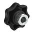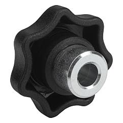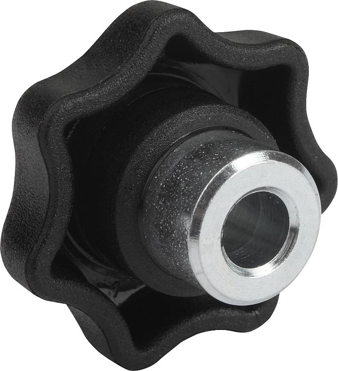带凸出型钢制衬套的星型旋钮以盲孔或内六角结构,特别适合十字销连接。