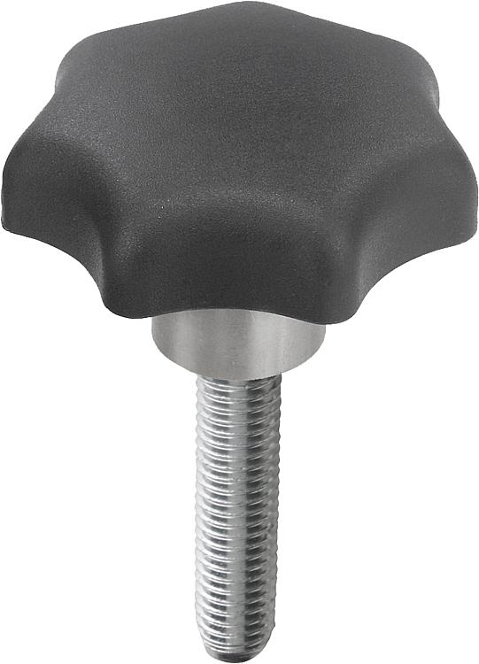 06210_L星形旋钮,L 型,带凸出型钢制衬套,带外螺纹 |