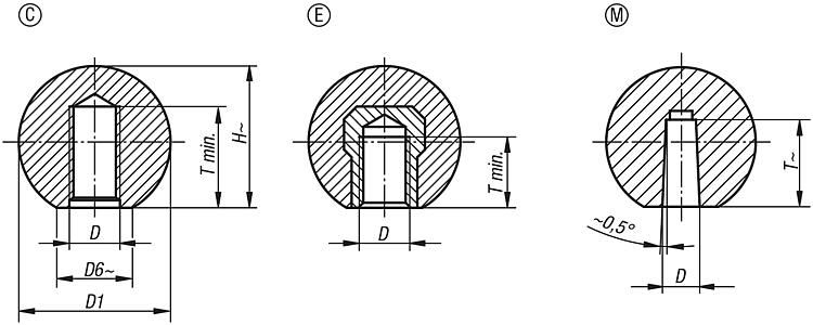 热塑性塑料手柄球,DIN 319,加强型,M 型,带圆锥孔