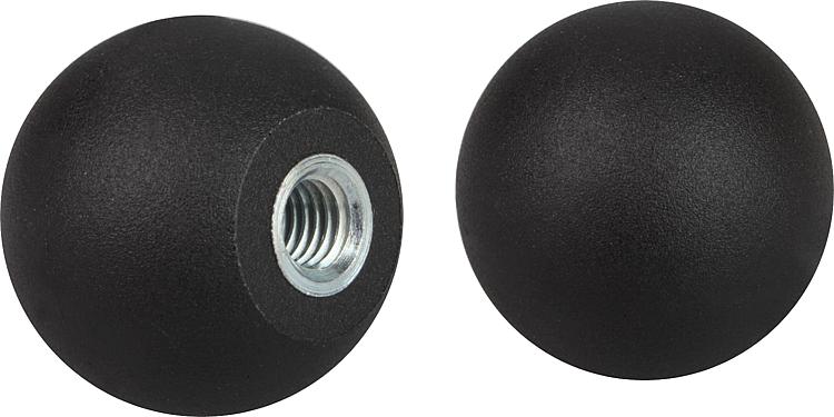 热塑性塑料制手柄球,DIN 319,加强型,E 型,带螺纹轴套