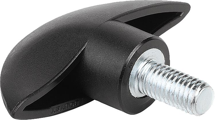 塑料蝶形旋钮,黄铜或钢制螺纹嵌入件,带外螺纹