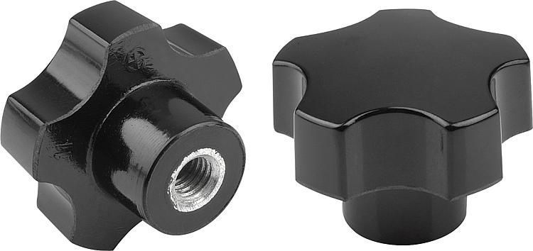 塑料(热固性塑料)五星把手,钢制螺纹嵌入件,带内螺纹