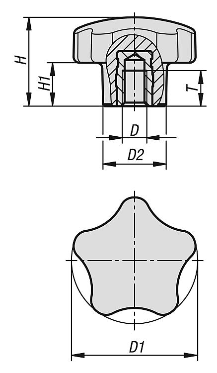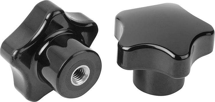 带内螺纹的塑料(热固性塑料)五星把手,钢制或不锈钢螺纹嵌入件