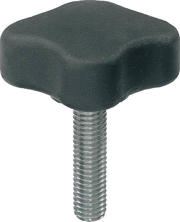 产品说明材料、规格:主体为黑色硬性热塑性塑料。 外罩为黑色软性热塑性塑料。 钢制外螺纹,强度等级 5.8,镀锌。提示:平头十字把手有 5 种规格,可提供带有内螺纹和外螺纹的规格。根据要求:其他外螺纹、螺栓长度、规格和颜色。特点: 下载此处为收集信息的 PDF: