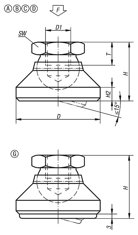 热塑性弹性体防滑板。规格:A 型:表面硬化的钢球体,黑色氧化。 G 型:表面硬化的钢球体,黑色氧化,带防滑板。 B 型:亮色。 C 型:表面硬化的钢球体,黑色氧化。 D 型:表面硬化的钢球体,亮色。提示:防滑垫可以吸收振动,避免铰接脚杯侧滑。 表格中所述的负载能力是建议,所用铰接脚杯可承受持续的最大静态负荷。特点: 下载此处为收集信息的 PDF: