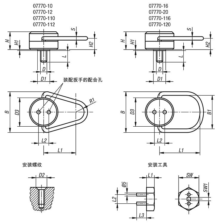 装配扳手说明:- 将装配扳手插入旋转吊环螺栓的安装孔。